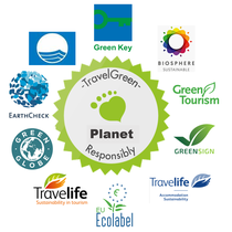 In 2023, more than 40 leading international and national certification programs listed their 23,000 green hotels and campsites, tour operators and travel agencies, beaches and destinations on the public Tourism2030 - Travel Green Planet Maps*).The vast majority of 80% of these travel offers with environmental or sustainability labels have been certified by 10 international systems: Green Key, Blue Flag, Green Tourism and Biosphere, followed by Travelife for Accommodations, EarthCheck, GreenSign, Green Globe, Travelife for Tour Operators and the EU Ecolabel. Three of them are mainly represented in their country of origin: Green Tourism in Great Britain, Biosphere in Spain and GreenSign in Germany.